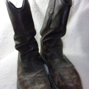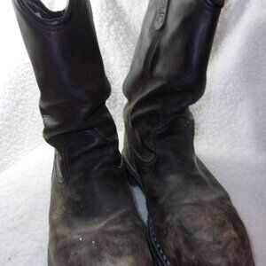 THIS IS A PAIR OF MENS WORK BOOTS THAT ARE FROM REDWING AND ARE STEEL TOE. THEY ARE THE PECOS SUPER SOLE , AND WATERPROOF METGUARD. THEY DO SHOW WEAR AND SCRATCHES FROM USE AND WEAR. #ASTM F 2413-11. THEY ARE A SIZE 11 E2. THEY ARE PRELOVED AND IN FAIR CONDITION. COMES FROM A SMOKE FREE HOME AND REASONABLE OFFERS ARE ALWAYS WELCOME AND CONSIDERED.