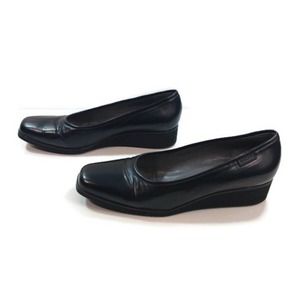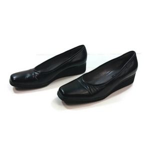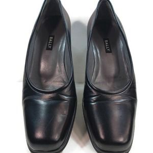 S1331 GUC $425 Bally Black Leather Wedge Loafers size 8.5M