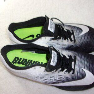 THIS IS A PAIR OF MENS NIKE AIR ZOOM ELITE 9 RUNNING SHOES IN THE COLOR OF BLACK AND WHITE WITH THE INSIDE SOLES BEING NEON GREEN. THEY ARE IN GOOD CONDITION. THERE IS A SLIGHT YELLOWISH COLOR ON THE ONE SIDE OF THE BACK OF ONE OF THE SNEAKERS NEAR THE HEEL, OTHERWISE IN GOOD CONDITION. THE SIZE IS A 10.5. #863 769 001. COMES FROM A SMOKE FREE HOME AND REASONABLE OFFERS ARE ALWAYS WELCOME AND CONSIDERED.