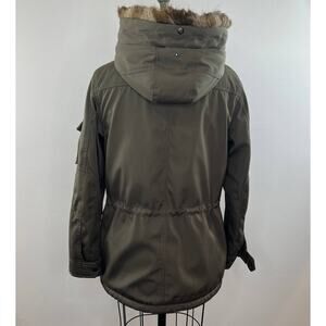 S13/NYC Olive Green Faux Fur Trim Long Sleeve Zip Front Hooded Coat Size S Small