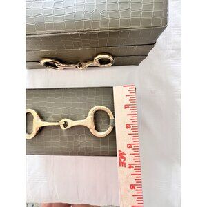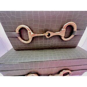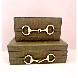 S/2 Vegan Crocodile Decorative Boxes GREEN GOLD EQUESTRIAN Jewelry Storage