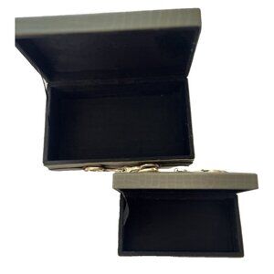 Made from vegan leather, these rectangular boxes are medium and small in size with dimensions of 10"L x 6"W x 2.75"H for the large and 8"L x 4"W x 3"H for the small box.