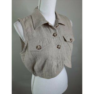 S2S Vtg Linen Boxy Crop Top Tunic Size 9 Medium Button Collared Sleeveless Shirt. Condition is "Pre-owned". Shipped with USPS Priority Mail.