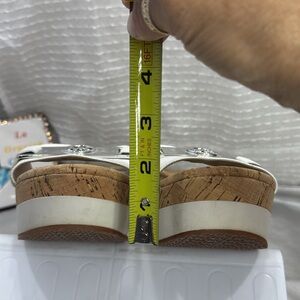 (S3) Michael Kors Warren Wedge Platform Sandals for Women, Size 9 M, White Cork Step out in style with these chic Michael Kors white wedge sandals. Perfect for any occasion, these sandals offer both comfort and elegance. In very good used condition, see photo for more details