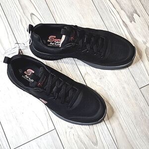 Stay active and stride in easy-wearing athletic comfort with the S Sport by Skechers Brennen 2.0. This Relaxed Fit sneaker features a flat mesh knit upper with a synthetic brace detail in a sporty casual slip-on style with stretch laces, a cushioned Skechers Memory Foam comfort insole and a shock-absorbing midsole.