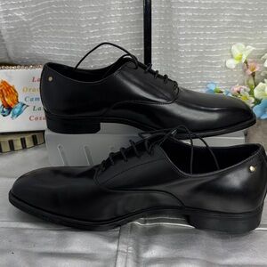 (S4) Zara Derby dress shoes. Smooth upper. Pointed toe. Slightly heeled sole. Men's size 43/10 US. New with tags. See photo for details. Sleek black shoes with a polished finish. Ideal for formal events.