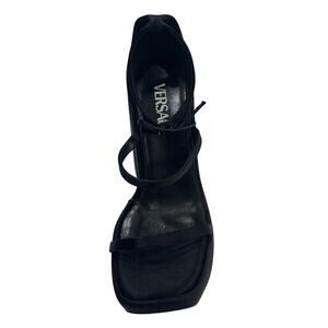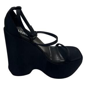 S5 VERSACE $1,500 Platform Wedge Heels Satin 3-Strap Medusa Buckle IT37.5/US7.5