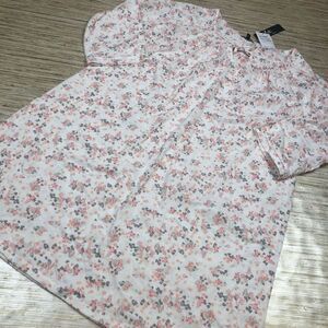 S-65 Aria smocked cotton lightweight sleepshirt nightgown WHITE FLORAL sz S nwt
