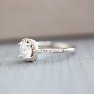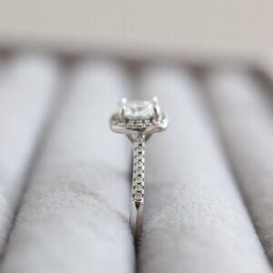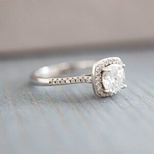 S925 1ct Clear Moissanite Diamond Halo Style Engagement Ring Sterling Silver Stamped 925