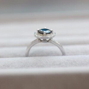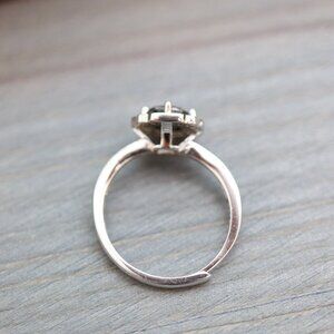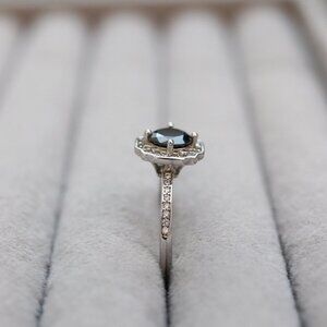 S925 1cttw Black Moissanite Diamond Flower Halo Style Engagement Ring Silver