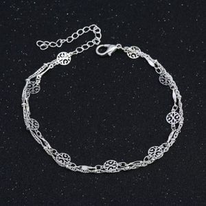 S925 Ankle Bracelet Disc Charm Layered Silver New