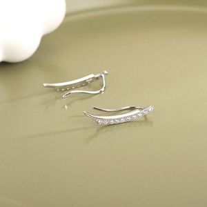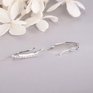 S925 Curved Rhinestone Minimalist Earrings