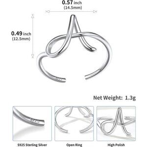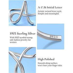S925 Initial Rings, Adjustable Size 6-12 Statement Alphabet Letter A-Z Jewelry