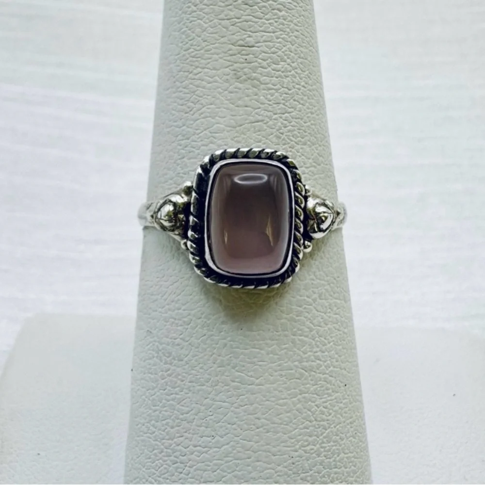 Gorgeous rose quartz ring with rope detail. Brand New Never Worn.
