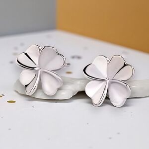 🆕️ S925 Silver Four-Leaf Clover Stud Earrings Dainty Trendy Lucky Charm Jewelry