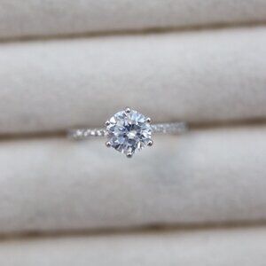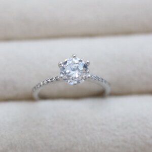 S925 Solitaire 6-Prong 6mm CZ AAA Ring with Side Stones Sterling Silver Stamped