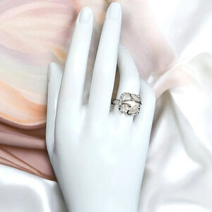 🆕️S925 Sterling Silver Adjustable Baroque Pearl Ring 💍Trendy Intricate Design