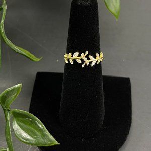 S925 Sterling Silver Cubic Zirconia Leaf Vine Adjustable Open Ring NEW