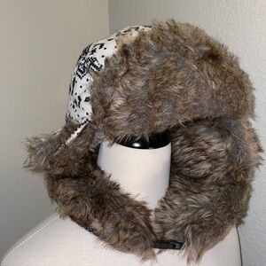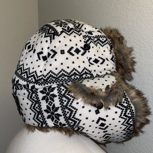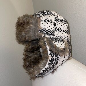 SA Nordic trapper fur lined earflap hat w chin buckle. One size fits most.