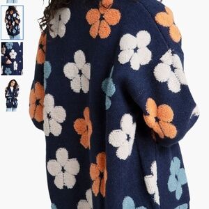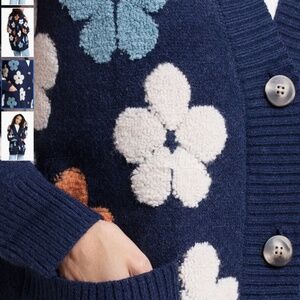 One Size, NAVY Wrap yourself in cozy comfort when you top your look with this buttoned cardigan stitched with blooming flowers. 30" length Front button closure Shawl collar Long sleeves Front patch pockets 100% acrylic Spot clean