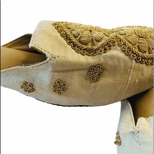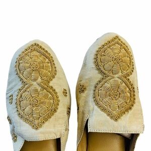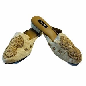 Details: These gorgeous slides from SAACHI embody true Indian craftsmanship with a modern edge. Uniquely hand embroidered and features a leather trim and the saachi logo.