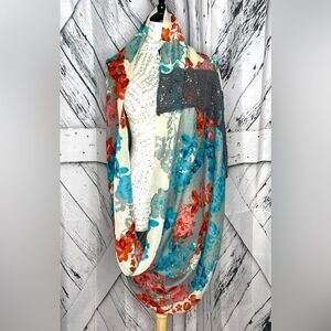 SAACHI BLUE FLORAL LACE LOOP SCARF