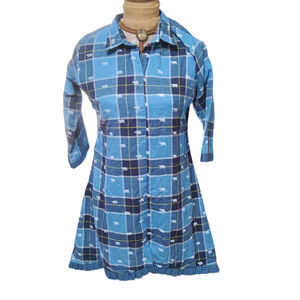 SAAR by Rajkumar's Blue Plaid Bear flax 3/4 sleeve button down tunic size S