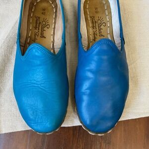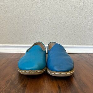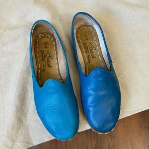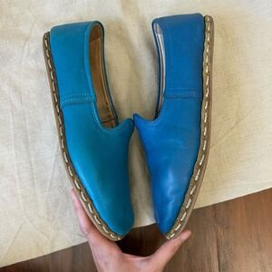 SABAH Turquoise Leather Slip-On Loafers Flats