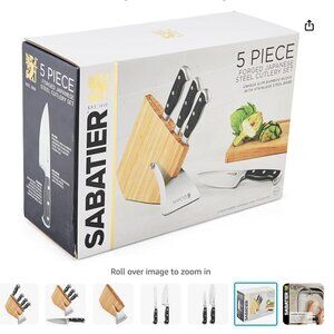 This is a beautiful, elegant and space-saving set of 4 critical knives. Up your cooking game while beautifying your kitchen too! Everyone knows Sabatier is one of top top European (French... to be exact!) brands in the culinary world. This slim block set is perfect for smaller spaces or where ever your counter space is limited. Check the prices on Amazon and eBay -- they are all $100+. Buy it here, $ave some buck$... and be the Top Chef and financial whiz you've always wanted to be!!! ; - )