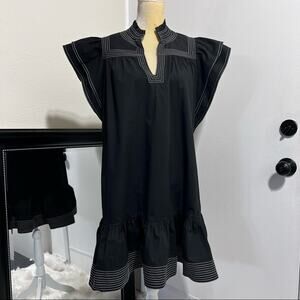 SABINA MUSÁYEV Black Ruffle Swing Dress Size Medium.