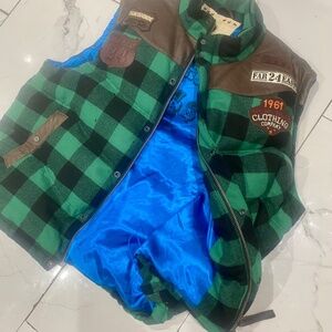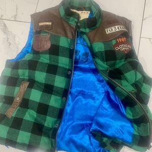 SABIT Vintage Wool/Leather Down Vest Sz 3X