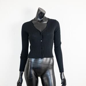 SABLYN Cropped Cashmere Ribbed Cardigan top in Black size XS