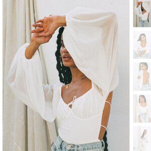 SABO Ivory White Open Back Long Sleeve Bodysuit - Medium