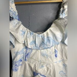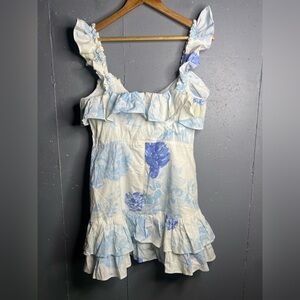 The Rialto Dress is made from a high quality natural cotton fabric with our exclusive new peony print. It features feminine frill detailing at sleeves, neckline and skirt and a fitted corset style bodice with boning for added structural support.