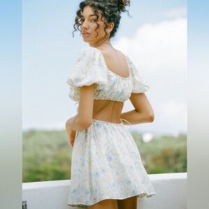 SABO SKIRT Eilish Dress in Bluebell Floral Puff Sleeve Cut Out Size Medium