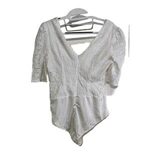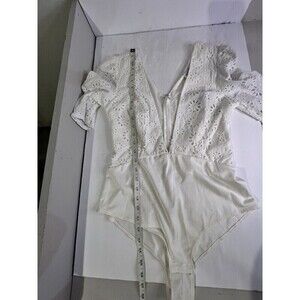 SABO Skirt Floral Eyelet 3/4 Sleeve Plunge Neck Bodysuit Size 8 NWT