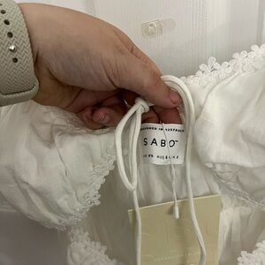 SABO White Puff Sleeve Lace Trim Crop Top NWT