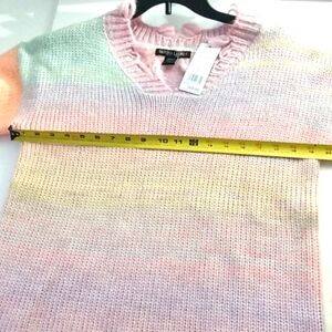SABRINA LAUREN NEW YORK Ombre' Frayed Edge V-Neck Knitted Long Sleeve Rainbow Watermark Sweater Size Large NWT