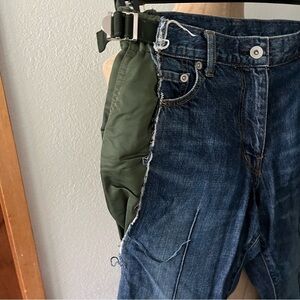 SACAI Japan sz 0 XS Deconstructed Blue DENIM JEANS Green Accent