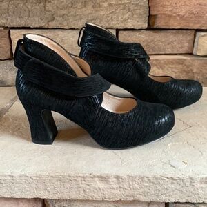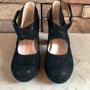 EUC Sacha London size 7 black leather heels. Crisscross in front. Chunky heel. Velcro closure. Absolutely beautiful. Hand made.
