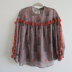 SACHIN + BABI Acacia Floral Tasseled Sheer Boho Blouse - Size S