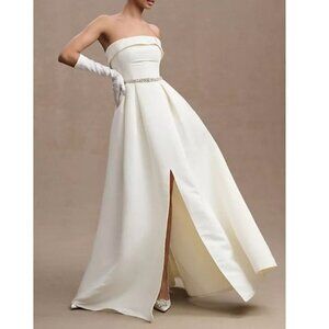SACHIN + BABI Brielle Belted Silk Faille Gown in Ivory Size US 6