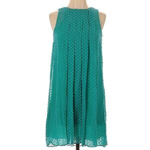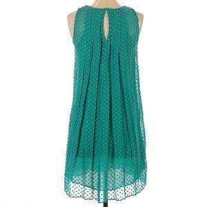 SACHIN + BABI Dress Size 0 Silk Cotton Mini Lined Green Blue Dots Shift Sleeveless