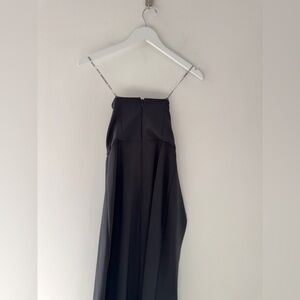 Not see through | No pockets | Not double lined | Tall girl friendly | Structured Silhouette | strapless or braless recommended | Heavy weight | Back zipper | Back hook and eye | Little stretch | Comfortable fit | Black Tie