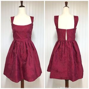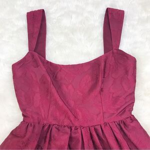 Sachin & Babi x Dillards Burgundy Red Jacquard Fit &Are Babydoll Mini Dress