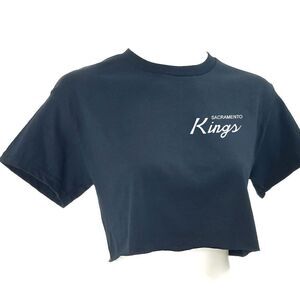 SACRAMENTO KINGS Double Script Retro Logo NBA Black "Cropped" Crop Top Basketball Tee. Size: S, M, L and XL