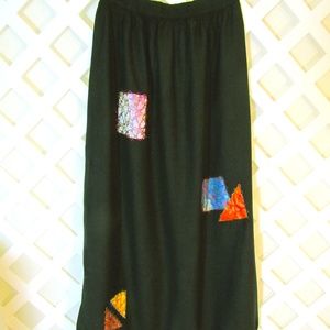 SACRED THREADS BLACK SKIRT Size M/L WITH PATCHES AND MIRROR ACCENTS-PMST1C