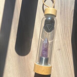 Bamboo Crystal Glass Bottle - Amethyst Crystal Infused