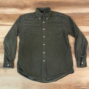 SADDLEBRED Corduroy Shirt Mens Large Olive Green Button Up