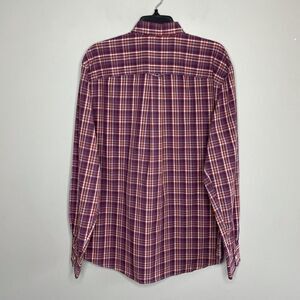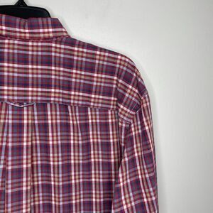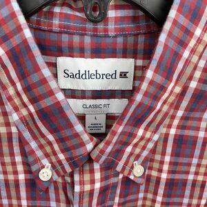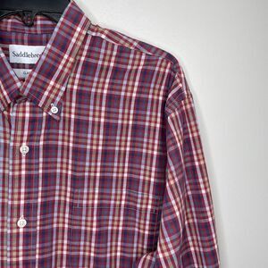 SADDLEBRED Shirt Mens Large L Classic-Fit Long Sleeve Red Plaid Button-Down